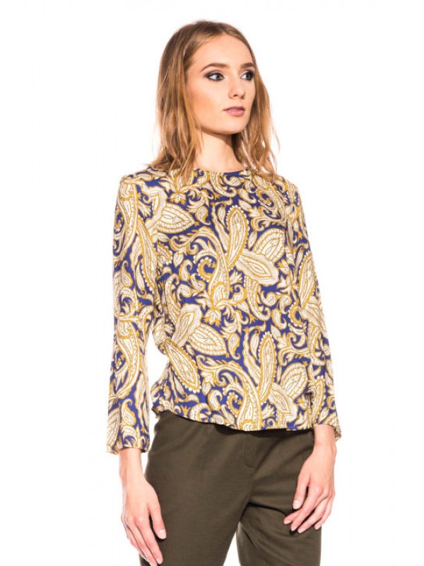 Блузка из вискозы с растительным принтом. Свободный крой, сзади застегивается на молнию.