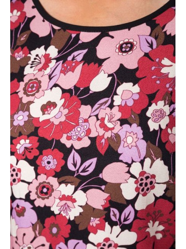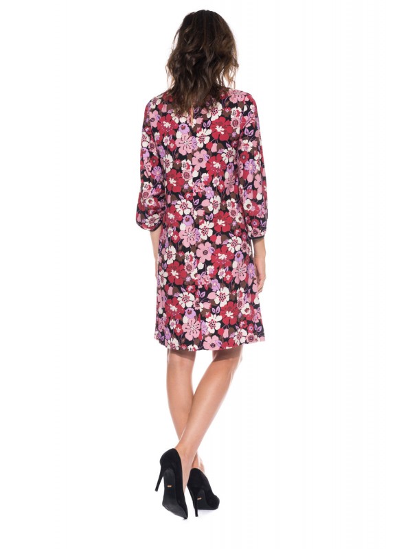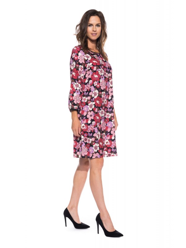 Платье в розово-красные цветы. А-силуэт.