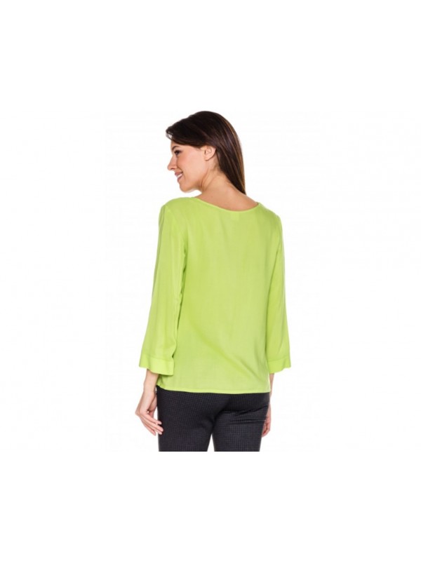 Блузка свободного кроя с широкими рукавами. Модный цвет лайм. Спереди планка (на четыре потайные пуговицы) и карманы.