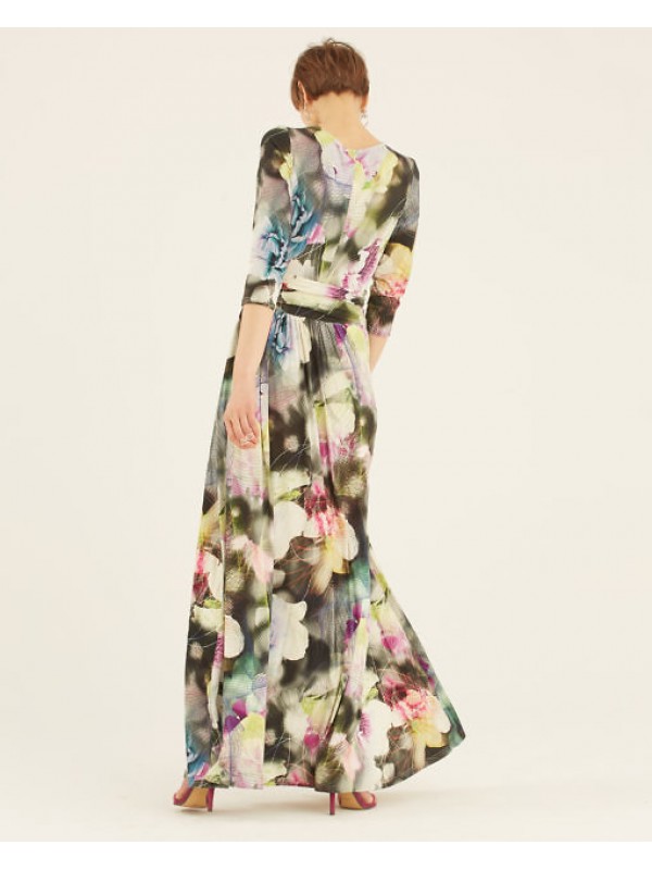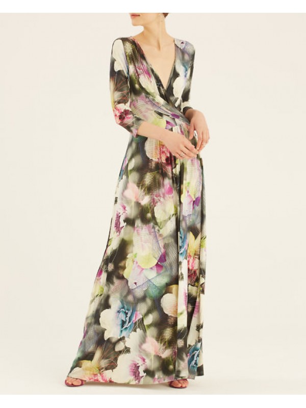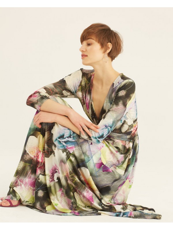 Платье-макси из вискозы джерси. Красивая линия декольте, V-образный вырез. Без подкладки. Рукав 3/4.